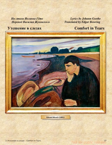 На стихи Иоганна Гёте Lyrics by Johann Goethe Перевод Василия Жуковского Translated by Edgar Bowring Утешение в слезах Comfort in Tears Edvard Munch (1891) 3. Утешение в слезах - Comfort in Tears 27 Not for public release