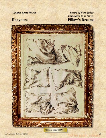 Стихи Веры Инбер Poetry of Vera Inber Translated by E. Mirvis Подушка Pillow’s Dreams Albrecht Dürer (1493) 7. Подушка - Pillow dreams 59 Not for public release